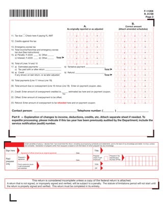 Amended Florida Corporate Income Franchise And Emergency Excise Tax